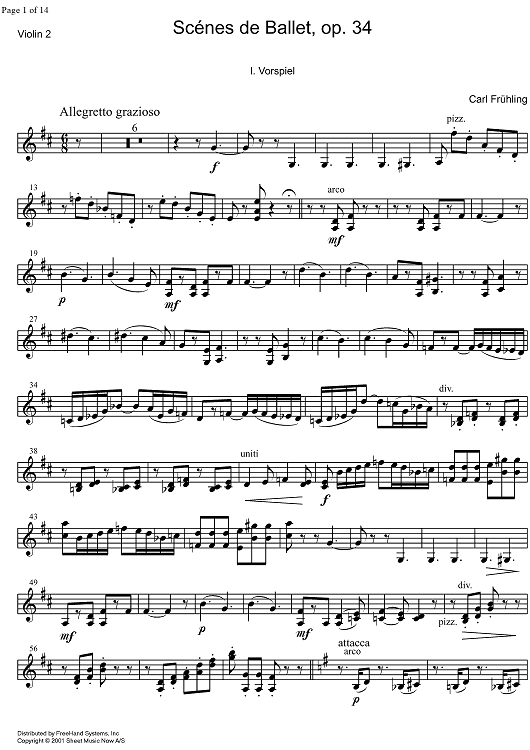 Digital Sheet Music for Scènes de Ballet Op.34 - Violin 2 by Carl Frühling scored for Orchestra; id:328949