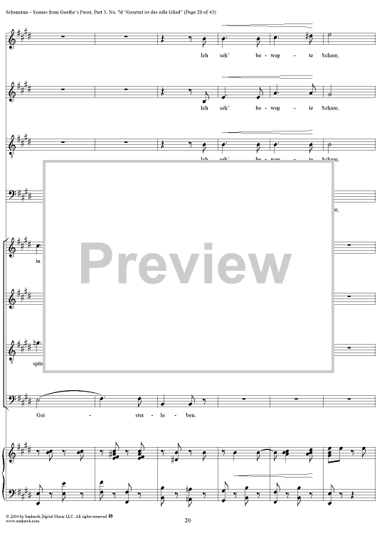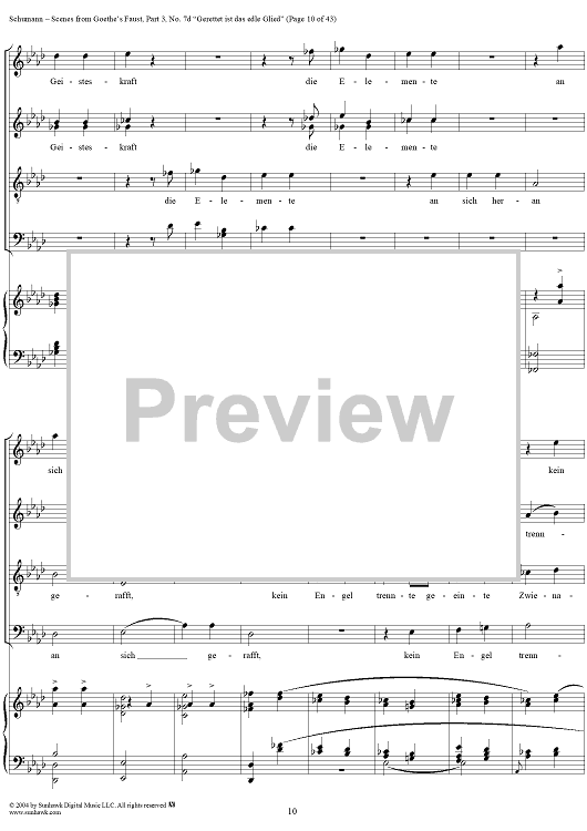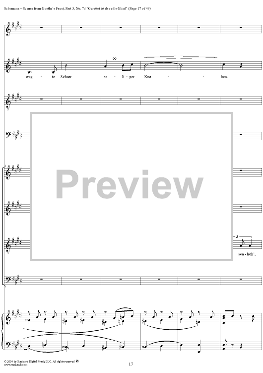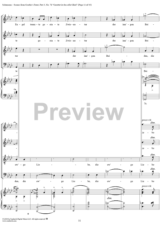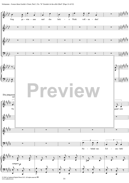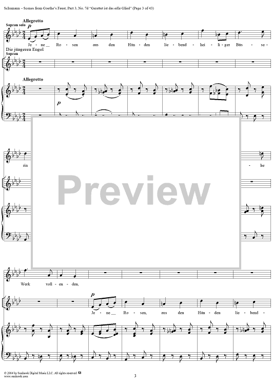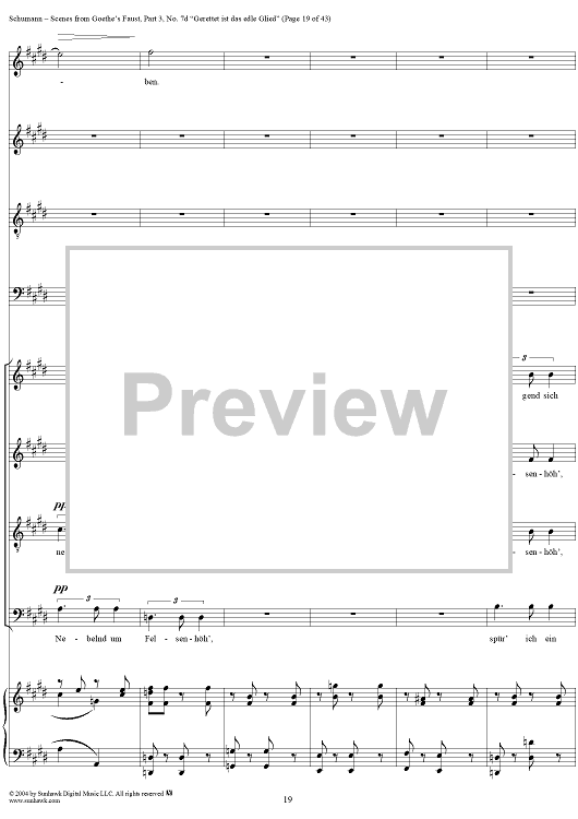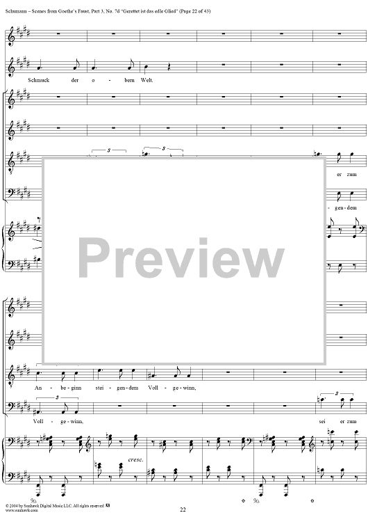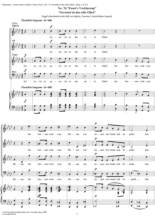 Digital Sheet Music for Scenes from Goethe's Faust, Part 3, No. 7d: "Faust's Verklärung": "Gerettet ist das edle Glied" - Score by Robert Schumann scored for Voice/Piano; id:304826