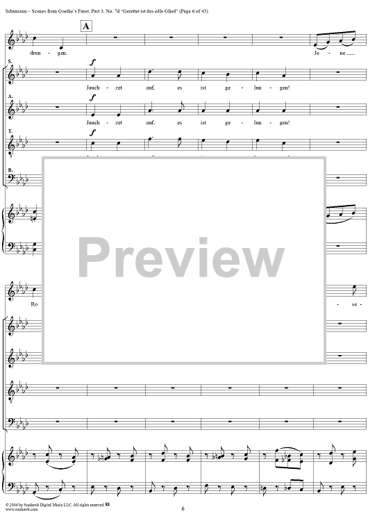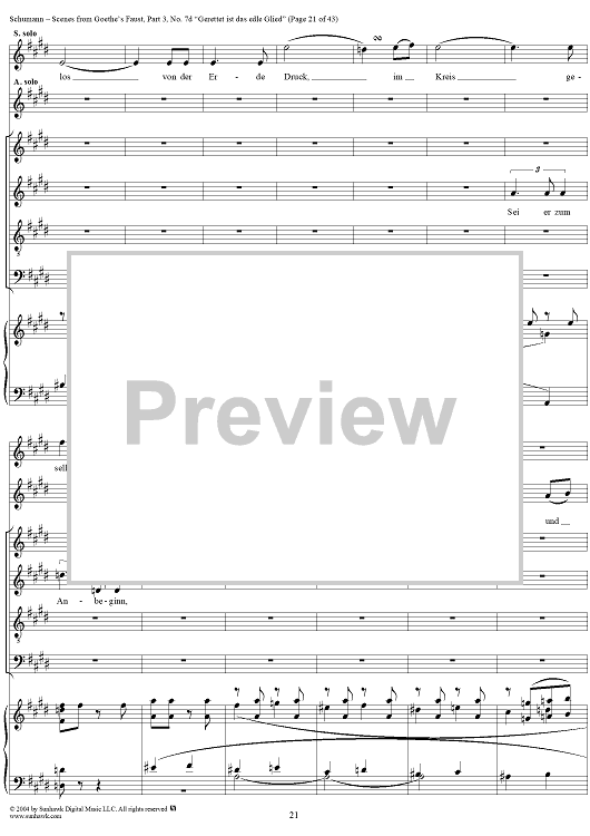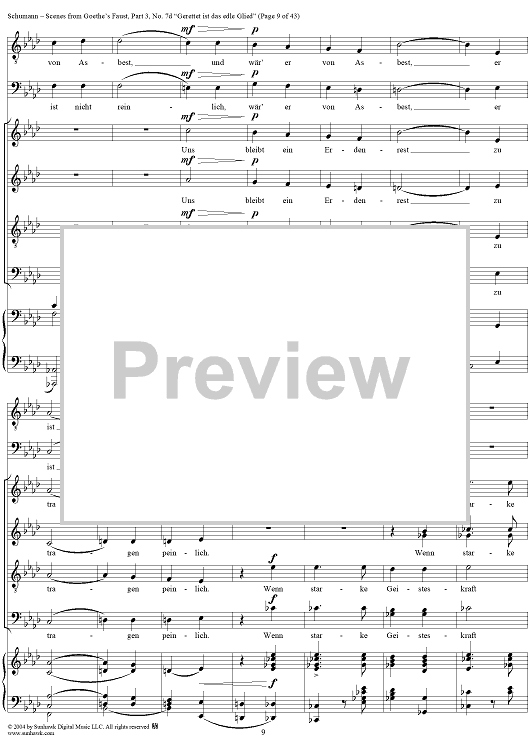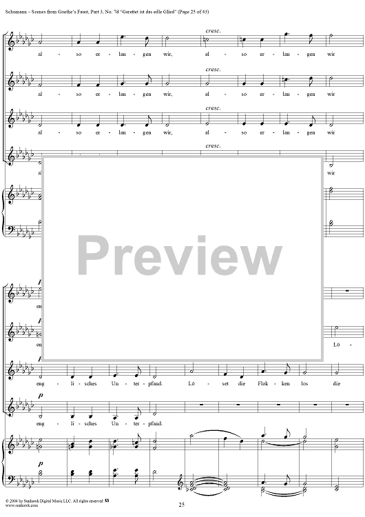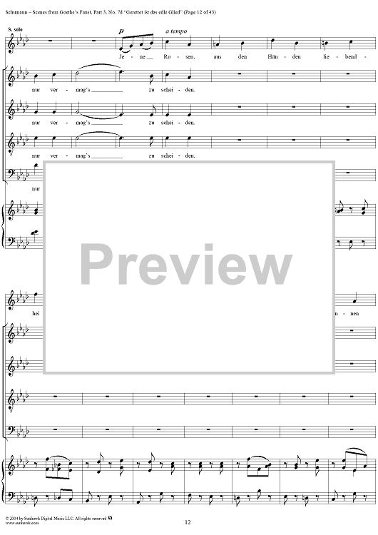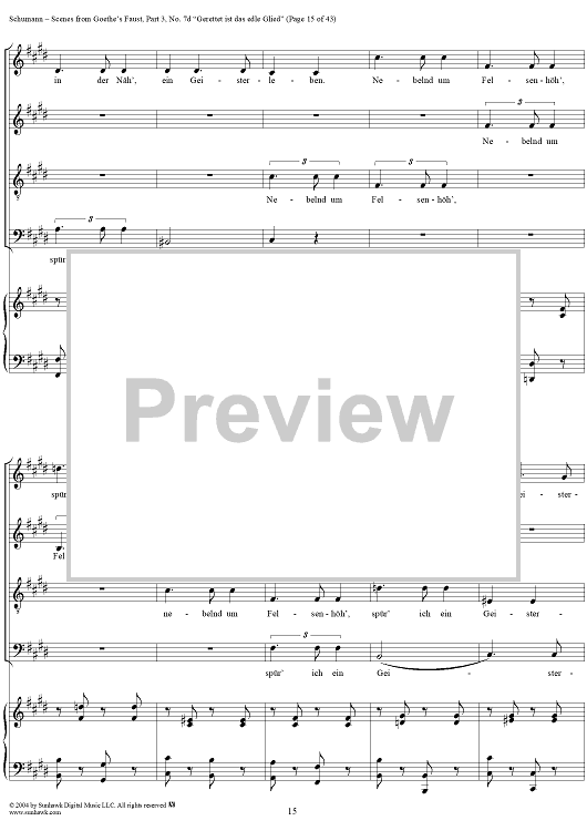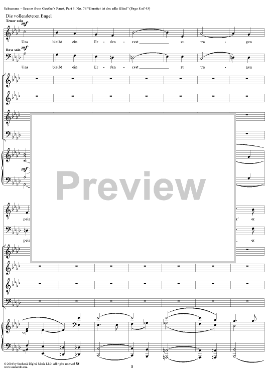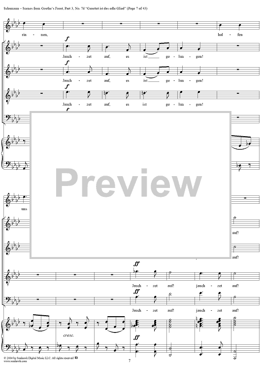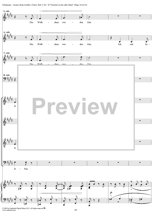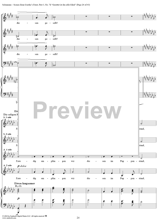 Digital Sheet Music for Scenes from Goethe's Faust, Part 3, No. 7d: "Faust's Verklärung": "Gerettet ist das edle Glied" - Score by Robert Schumann scored for Voice/Piano; id:304826