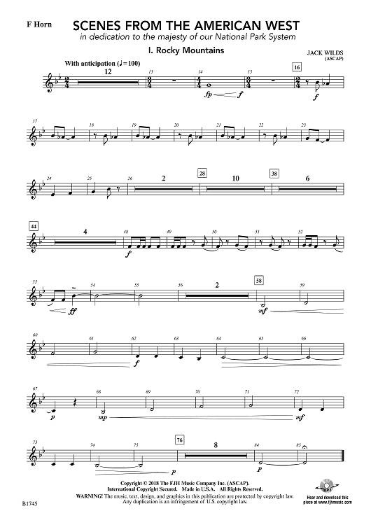 "Scenes from the American West - F Horn" Sheet Music by Jack Wilds