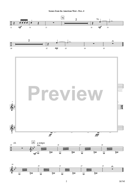 Digital Sheet Music for Scenes from the American West - Percussion 4 by Jack Wilds scored for Concert Band; id:508431