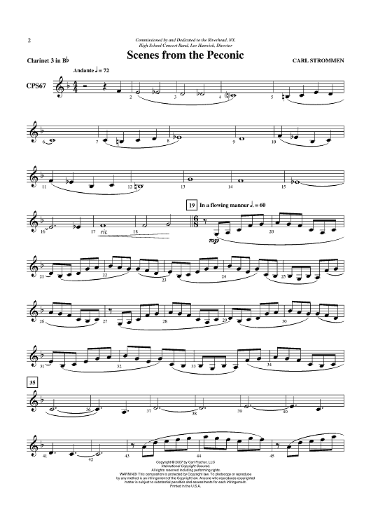 Digital Sheet Music for Scenes From The Peconic - Clarinet 3 in B-flat by Carl Strommen scored for Concert Band; id:407269
