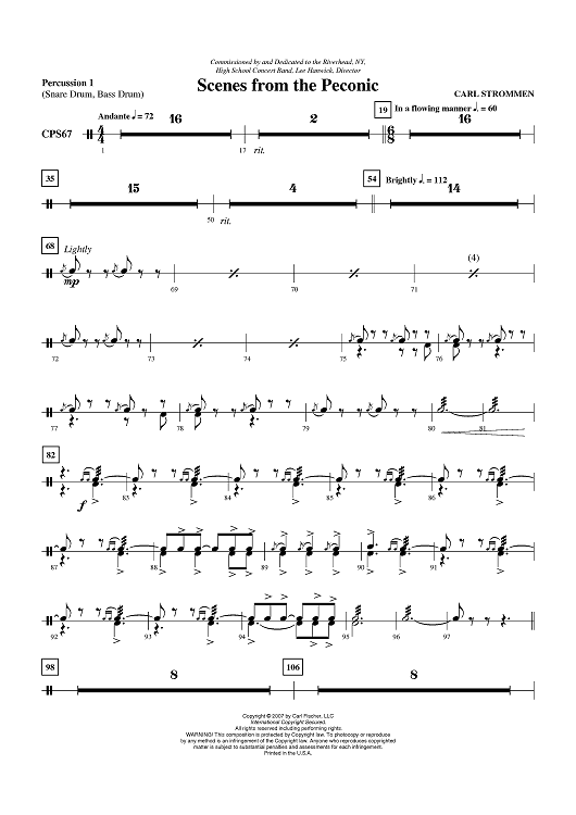 Digital Sheet Music for Scenes From The Peconic - Percussion 1 by Carl Strommen scored for Concert Band; id:407289