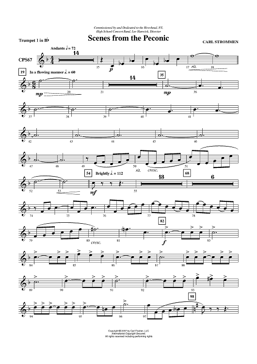 Digital Sheet Music for Scenes From The Peconic - Trumpet 1 in B-flat by Carl Strommen scored for Concert Band; id:407277