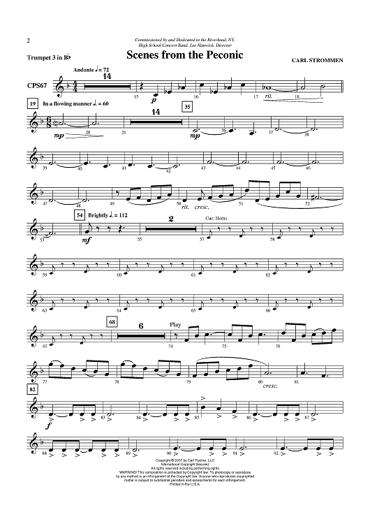 Digital Sheet Music for Scenes From The Peconic - Trumpet 3 in B-flat by Carl Strommen scored for Concert Band; id:407279