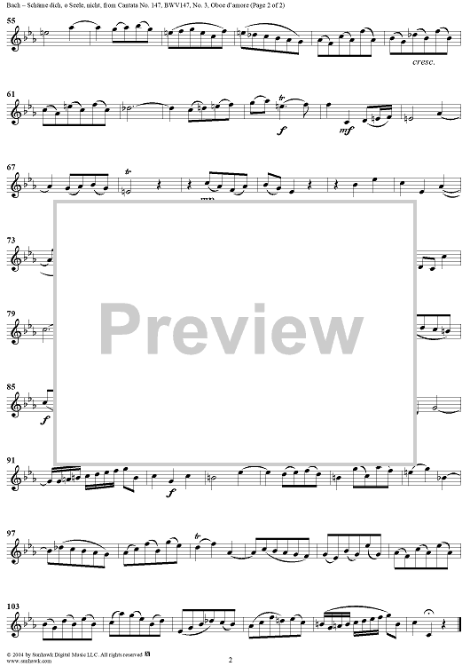 ""Schäme dich, o Seele, nicht", Aria, No. 3 from Cantata No. 147: "Herz und Mund und Tat und Leben" - Oboe d'amore" Sheet Music by Johann Sebastian Bach