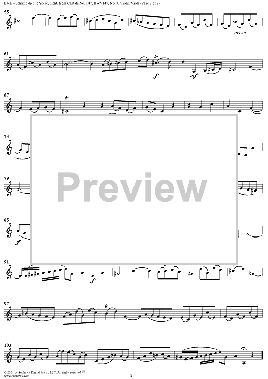 ""Schäme dich, o Seele, nicht", Aria, No. 3 from Cantata No. 147: "Herz und Mund und Tat und Leben" - Violin" Sheet Music by Johann Sebastian Bach