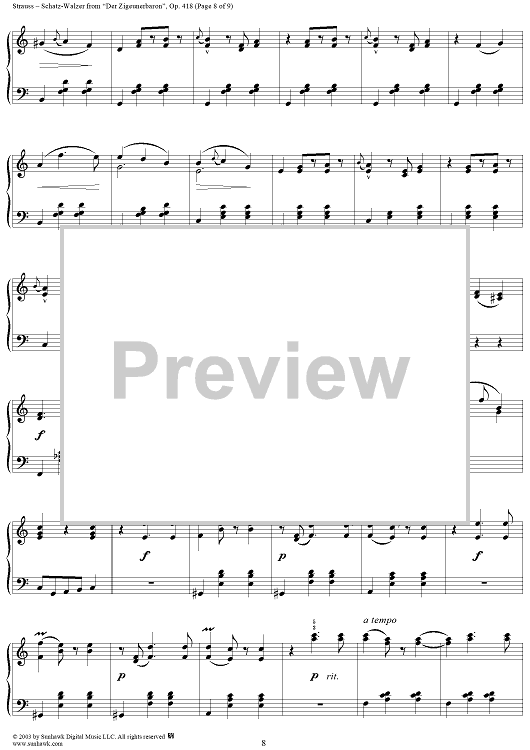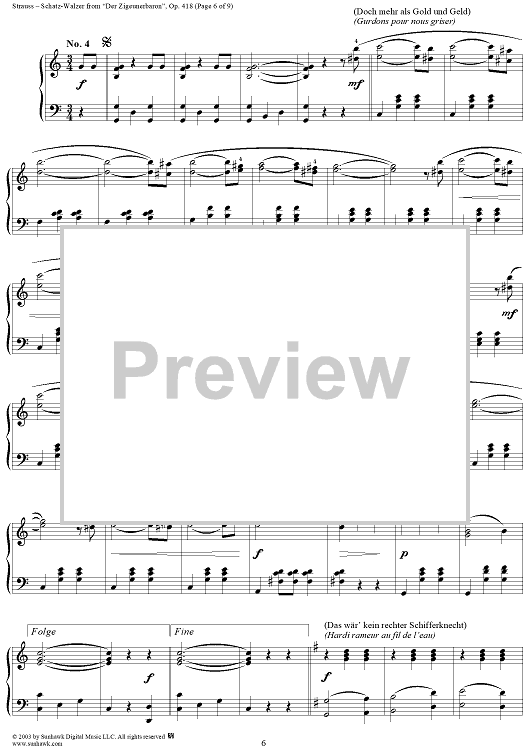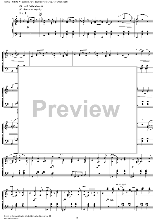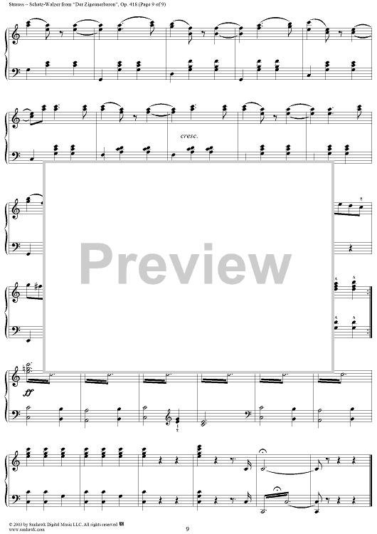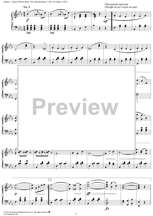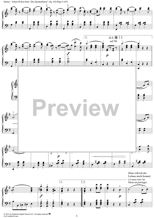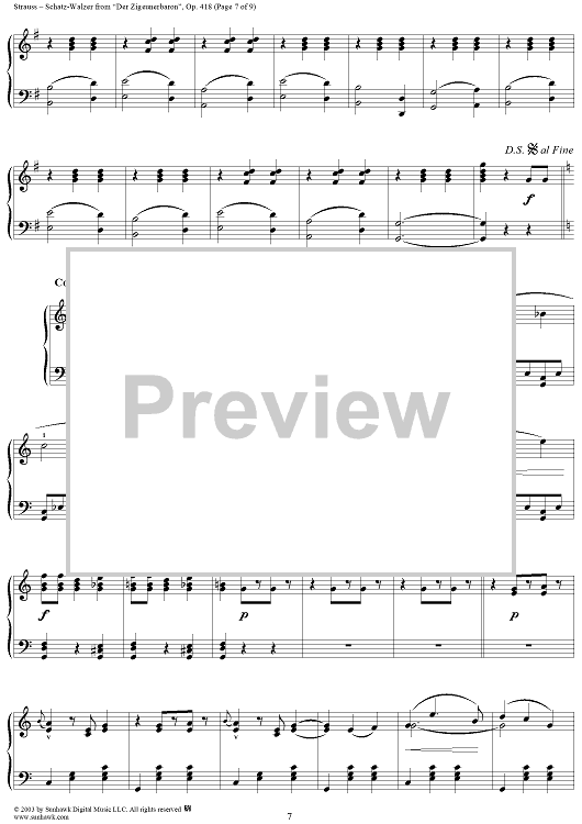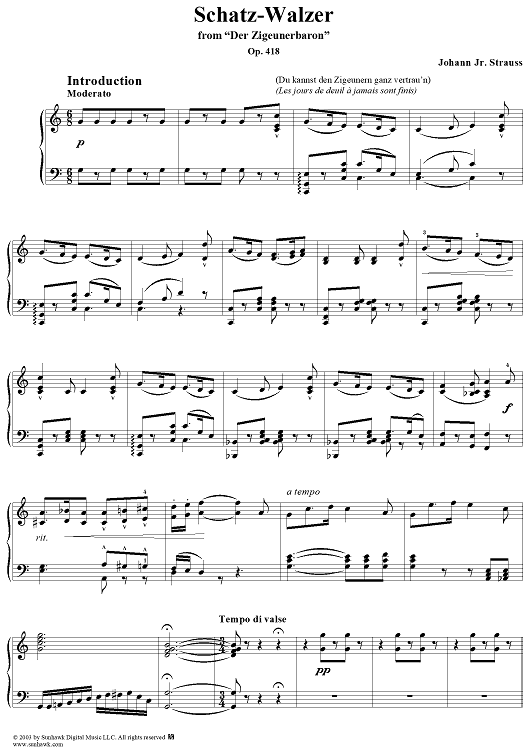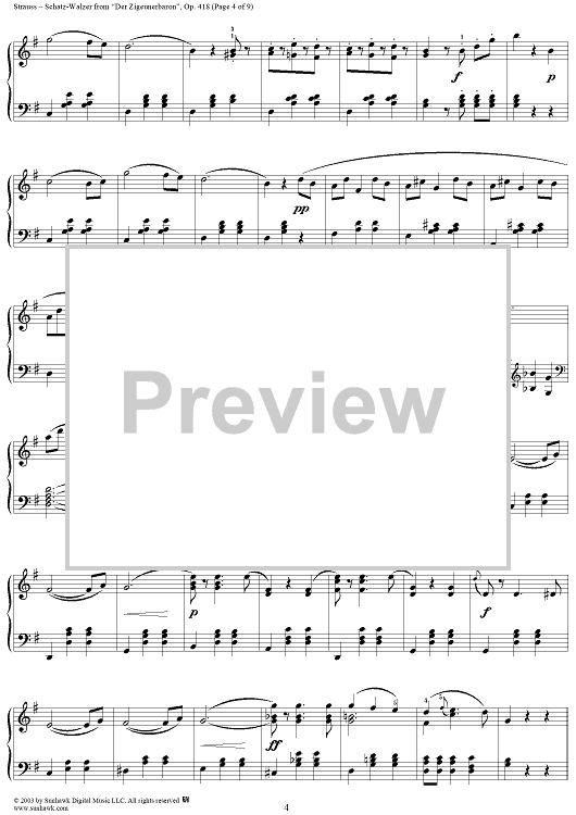 Digital Sheet Music for Schatz-Walzer Op. 418 by Johann Strauss II scored for Piano Solo; id:293717