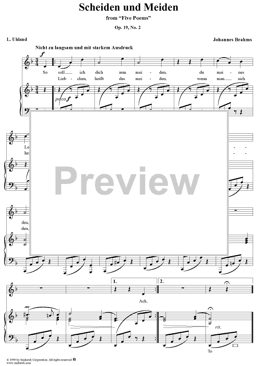 Digital Sheet Music for Scheiden und Meiden by Johannes Brahms, Ludwig Uhland scored for Voice/Piano; id:118493