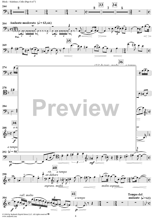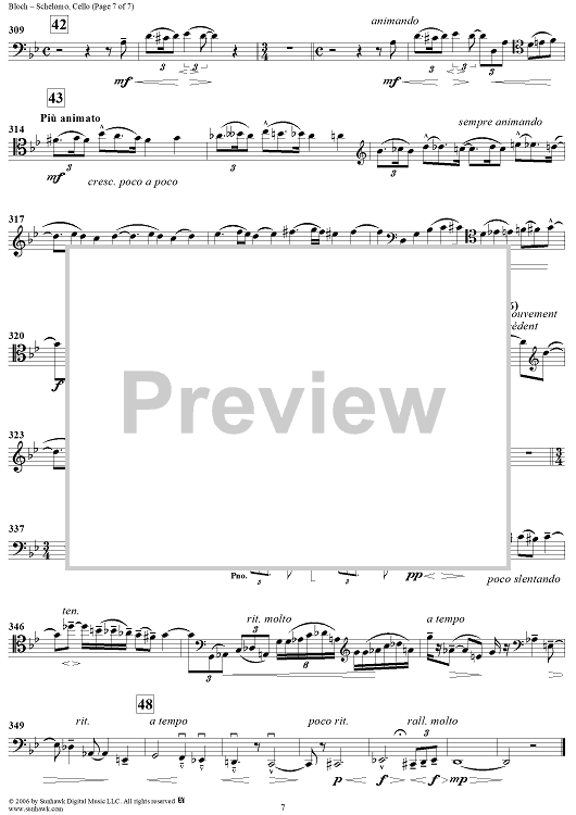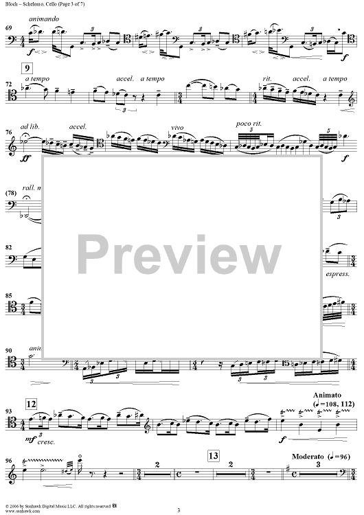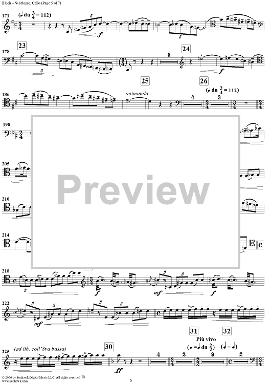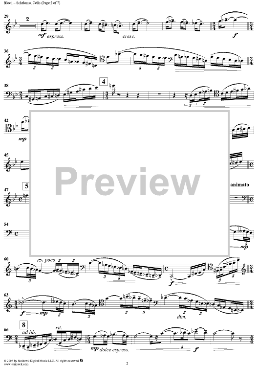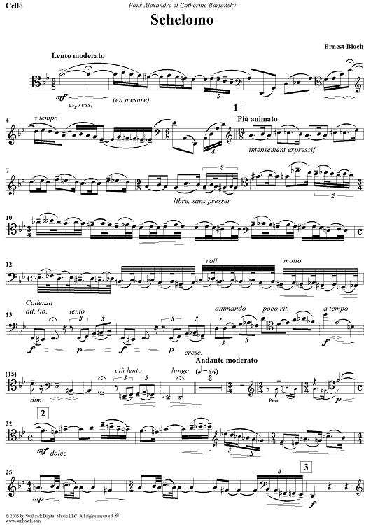Digital Sheet Music for Schelomo - Cello by Ernest Bloch scored for Cello/Piano; id:317527