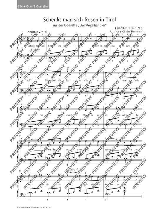 Digital Sheet Music for Schenkt man sich Rosen in Tirol by Carl Zeller, Hans-Guenter Heumann scored for Piano; id:499427