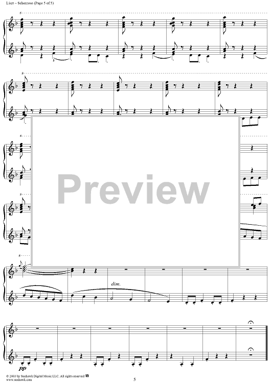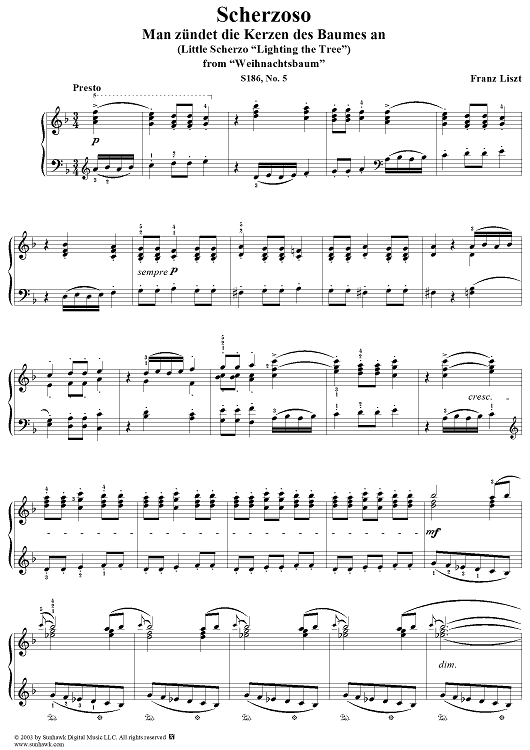 Digital Sheet Music for Scherzoso, No. 5 from "Weihnachtsbaum", S186 by Franz Liszt scored for Piano Solo; id:295002
