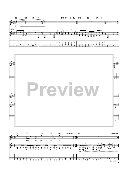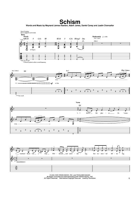 Digital Sheet Music for Schism by Daniel Carey, Justin Chancellor, Adam Jones, Tool scored for Guitar Tab; id:367880