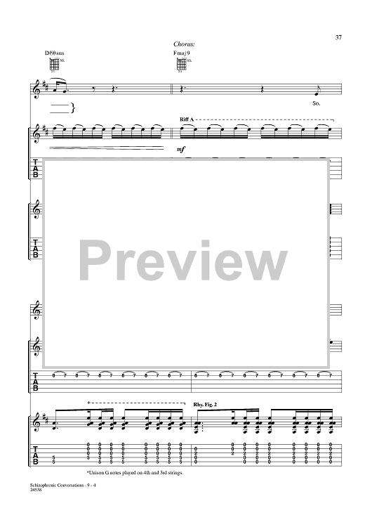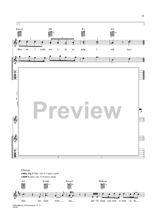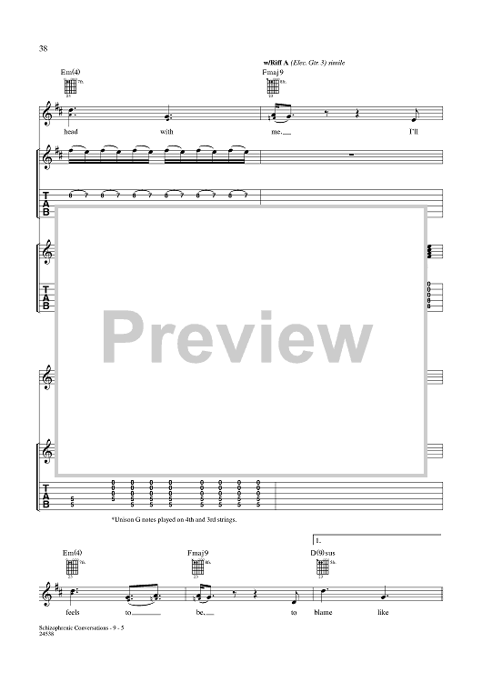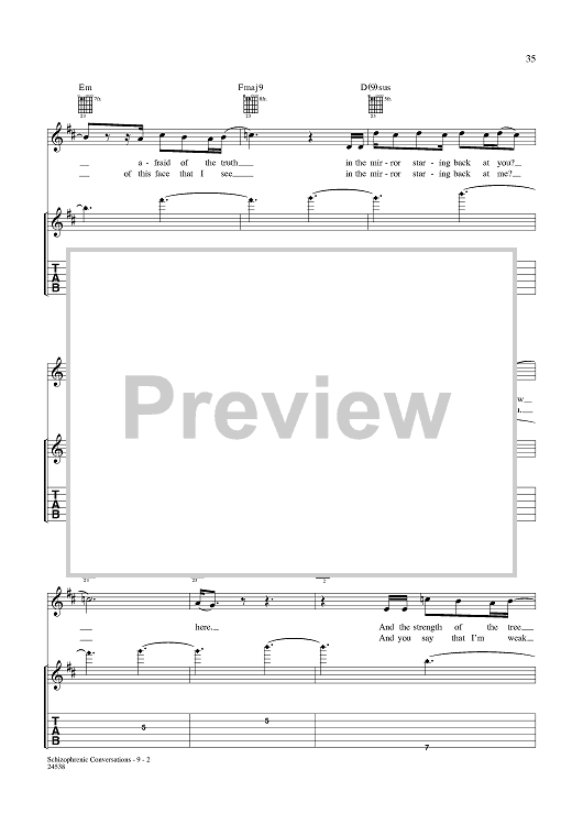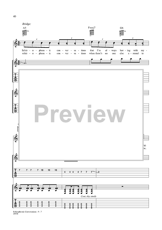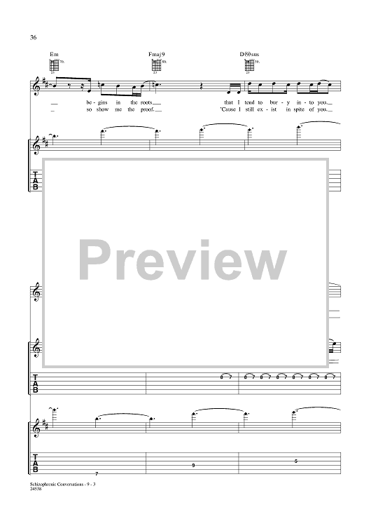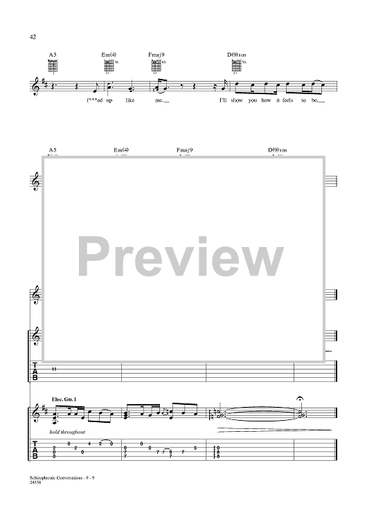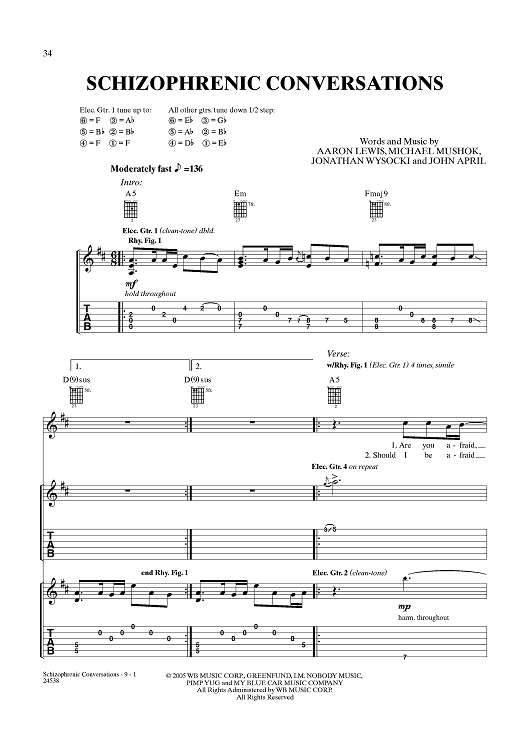Digital Sheet Music for Schizophrenic Conversations by Aaron Lewis, Michael Mushok, Jonathan Wysocki, John April, Staind scored for Guitar Tab/Vocal; id:359988