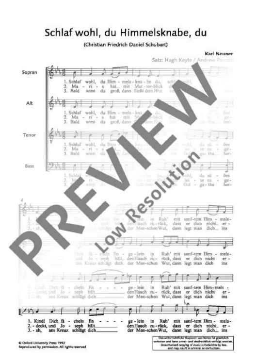 Digital Sheet Music for Schlaf wohl, du Himmelsknabe, du by Karl Neuner, Singer Pur scored for Mixed Choir (satb); id:501123
