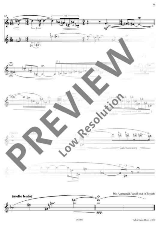 This recorder solo, with optional tubular bells accompaniment, is headed by a line from an ode by Klopstock, also quoted in his diary by the poet Hölderlin: 'Death, our saviour, ... softly approaches in clouds of sleep'.