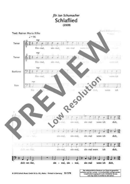 "Schlaflied - Choral Score" Sheet Music by Kurt Bikkembergs