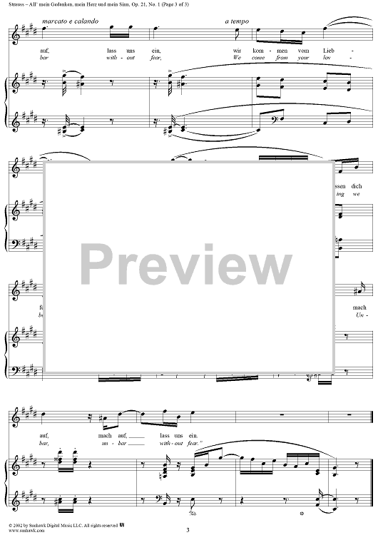 Digital Sheet Music for Schlichte Weisen, Op. 21, No. 1: All' mein Gedanken, mein Herz und mein Sinn (All of the thoughts in my heart and my mind) by Richard Strauss, Felix Dahn scored for Voice/Piano; id:256083