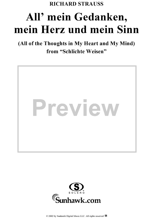 "Schlichte Weisen, Op. 21, No. 1: All' mein Gedanken, mein Herz und mein Sinn (All of the thoughts in my heart and my mind)" Sheet Music by Richard Strauss
