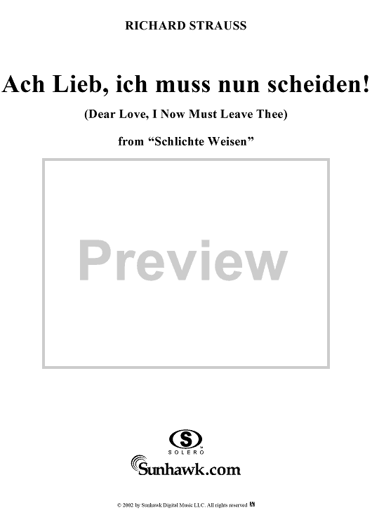 "Schlichte Weisen, Op. 21, No. 3: Ach Lieb, ich muss nun scheiden! (Dear love, I now must leave thee)" Sheet Music by Richard Strauss