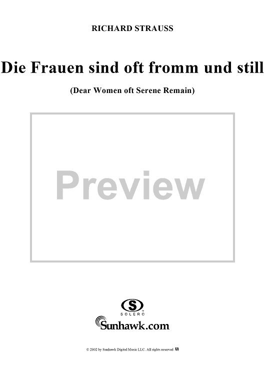 "Schlichte Weisen, Op. 21, No. 5: Die Frauen sind oft fromm und still (Dear women oft serene remain)" Sheet Music by Richard Strauss