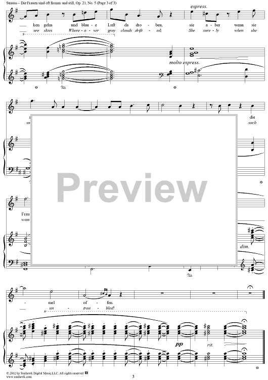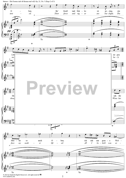 Digital Sheet Music for Schlichte Weisen, Op. 21, No. 5: Die Frauen sind oft fromm und still (Dear women oft serene remain) by Richard Strauss, Felix Dahn scored for Voice/Piano; id:256068