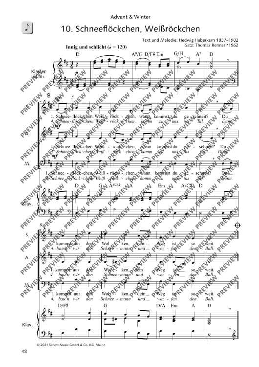 Digital Sheet Music for Schneeflöckchen, Weissröckchen - Score by Hedwig Haberkern, Thomas Renner scored for Mixed Choir (sab) And Piano; id:496390