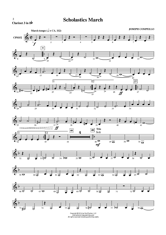"Scholastics March - Clarinet 3 in Bb" Sheet Music by Joseph Compello