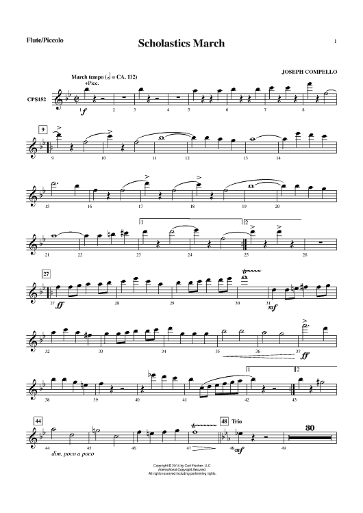 "Scholastics March - Flute/Piccolo" Sheet Music by Joseph Compello