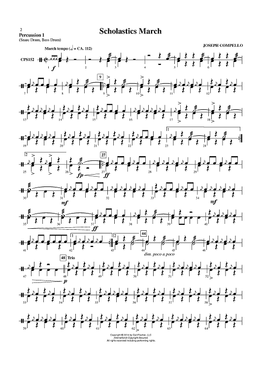 "Scholastics March - Percussion 1" Sheet Music by Joseph Compello