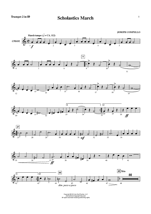 "Scholastics March - Trumpet 2 in Bb" Sheet Music by Joseph Compello