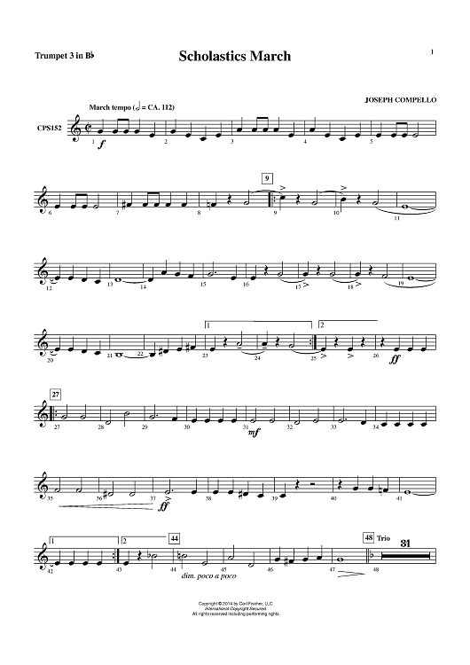 "Scholastics March - Trumpet 3 in Bb" Sheet Music by Joseph Compello