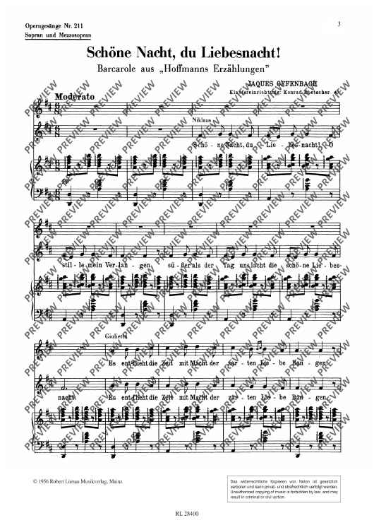Digital Sheet Music for Schöne Nacht, du Liebesnacht! in D major by Jacques Offenbach scored for Soprano, Mezzo-soprano And Piano; id:501951