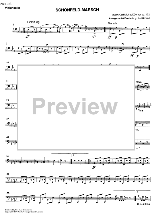 "Schönfeld Marsch Op.422 - Cello" Sheet Music by Carl Michael Ziehrer