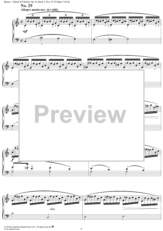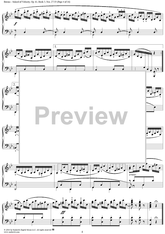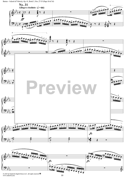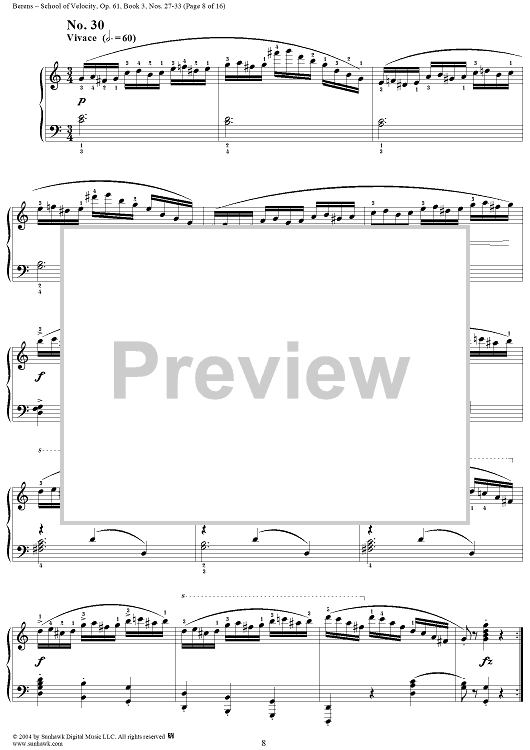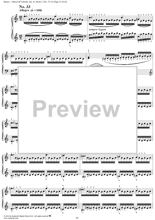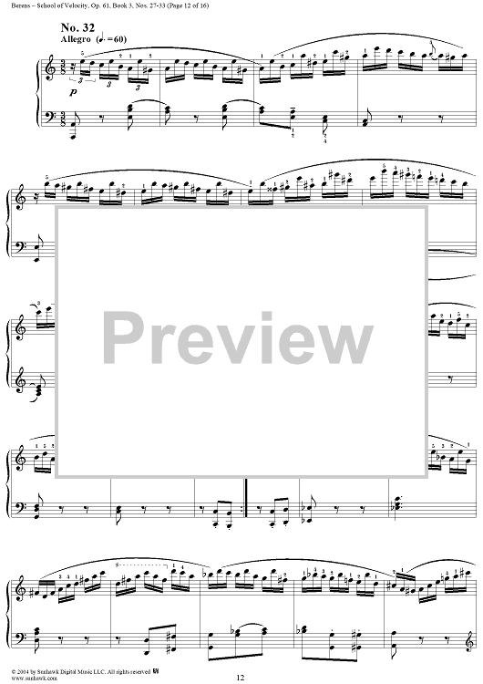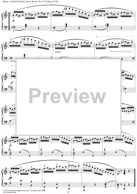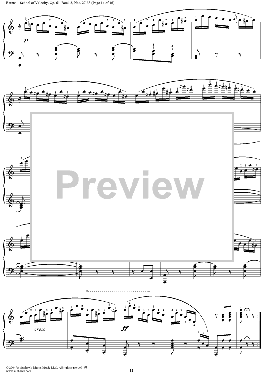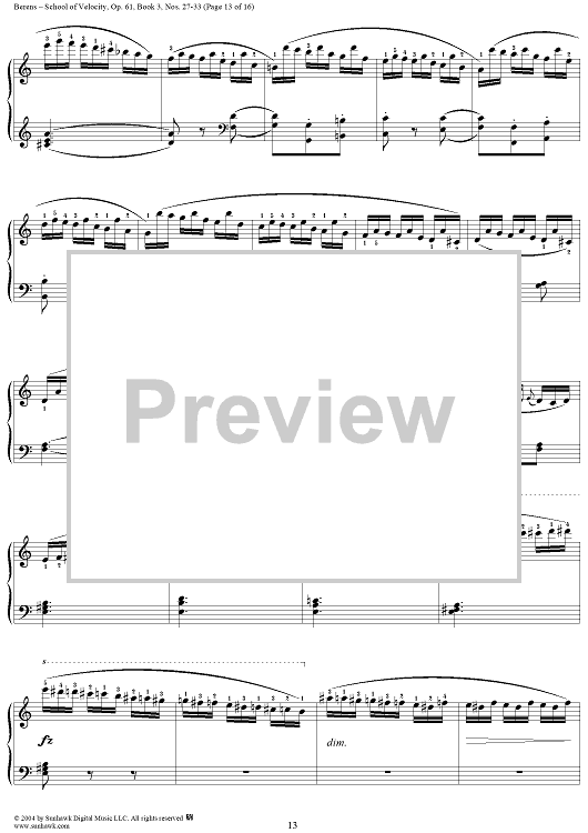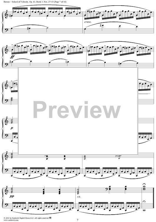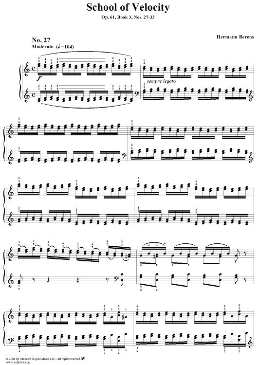 Digital Sheet Music for School of Velocity, Op. 61, Book III, Etudes Nos. 27-33 by Hermann Berens scored for Piano Solo; id:303262