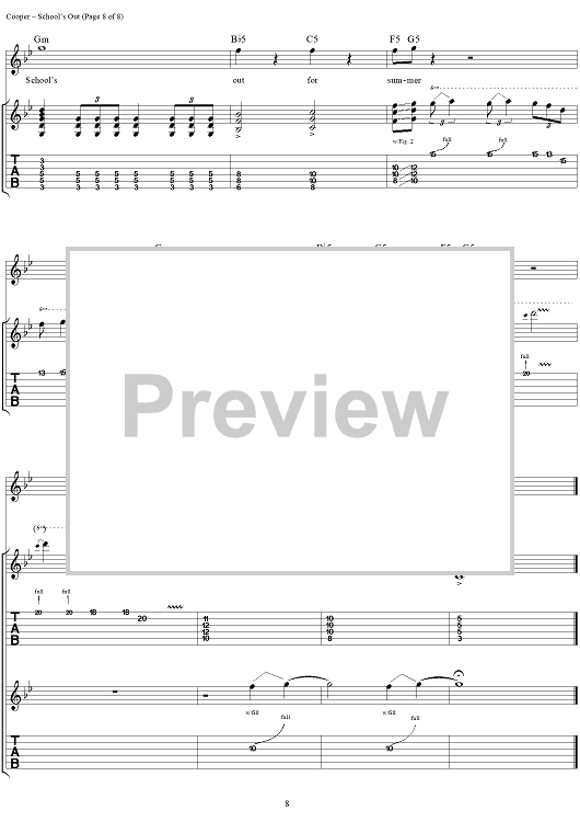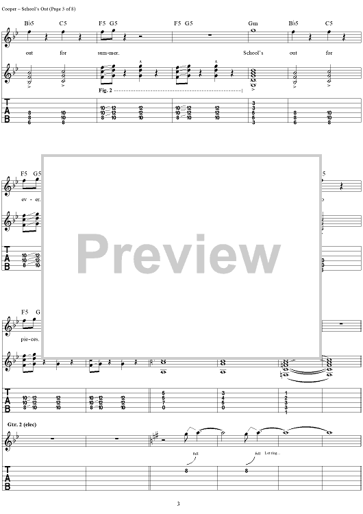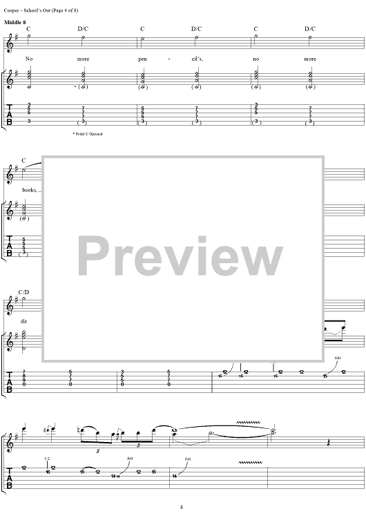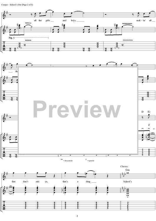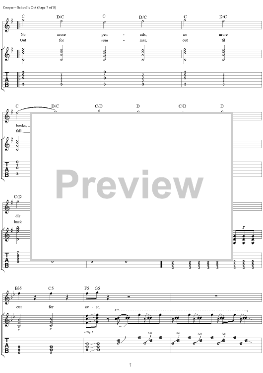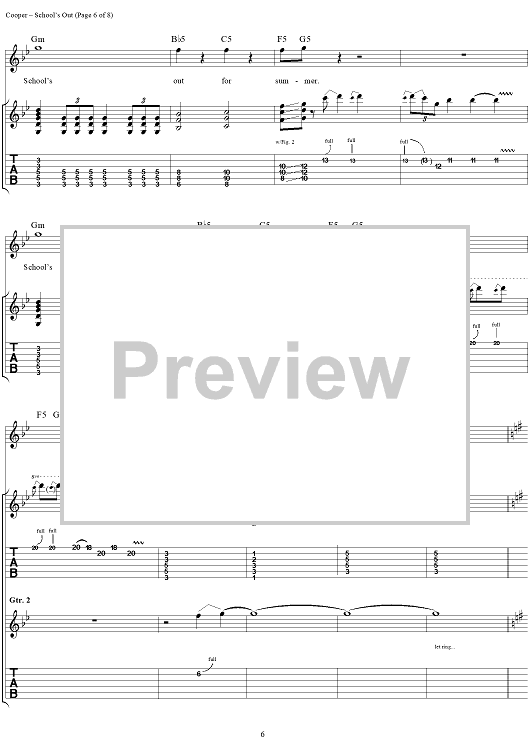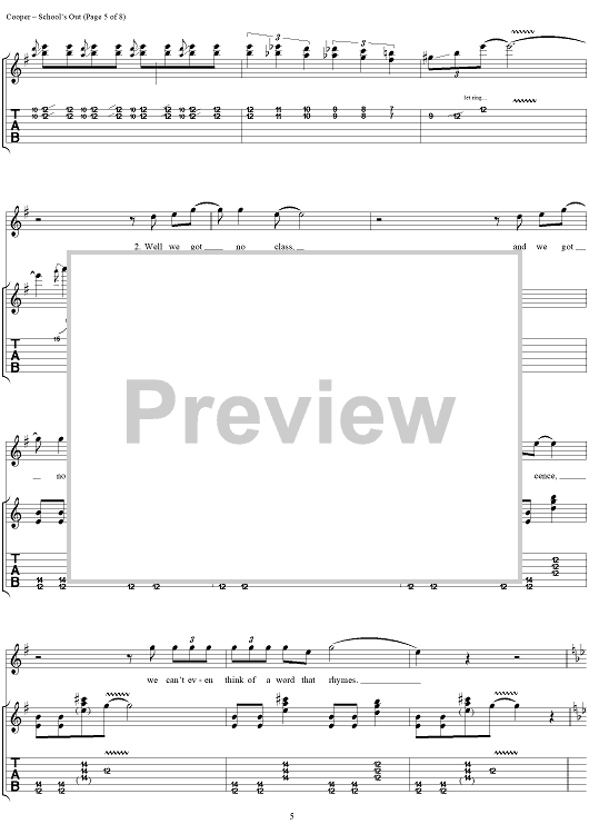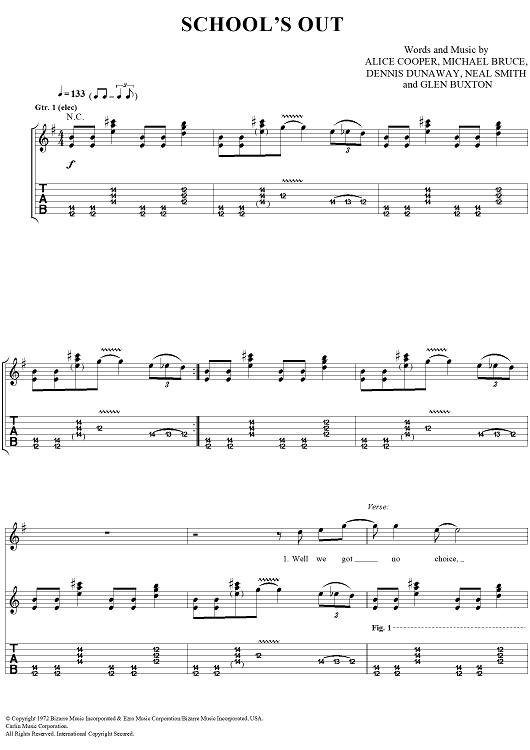 Digital Sheet Music for School's Out by Alice Cooper, Neal Smith, Michael Bruce, Glen Buxton, Dennis Dunaway scored for Guitar Tab/Vocal/Chords; id:404490