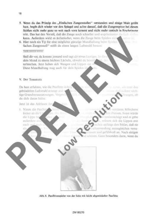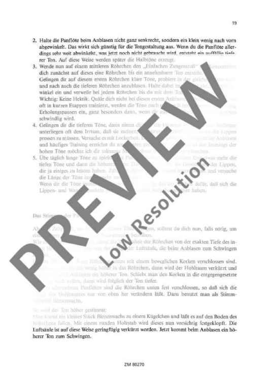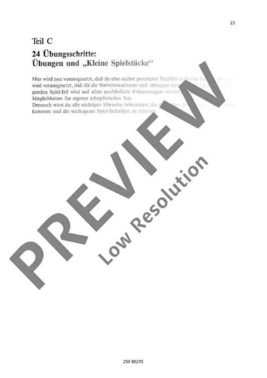 Die Panflöte, auch Syrinx, ist ein altes Hirteninstrument, benannt nach dem griechischen Hirtengott Pan. Sie ist auf der ganzen Welt verbreitet, es gibt sie schon seit Tausenden von Jahren und sie ist bis heute ein beliebtes Folklore-Instrument. Allen, für die die Panflöte mehr sein soll als ein touristisches Souvenir, sei diese Schule empfohlen, die sehr übersichtlich in das Spiel der diatonischen Panflöte einführt. Nach einer Einleitung zu Instrument und Spieltechnik finden sich viele Übungen und Spielstücke, vornehmlich aus Südamerika und Osteuropa. Viele der Stücke sind mit Akkordsymbolen bedacht,so dass auch dem Zusammenspiel z. Bsp. mit Gitarre oder Orgel nichts im Wege steht.