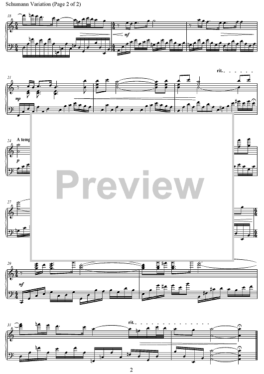 "Schumann Variation (on a theme from piano concerto in A minor, Op. 54, No. 1)" Sheet Music by Florian Christl