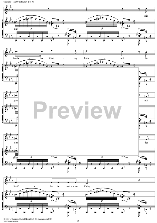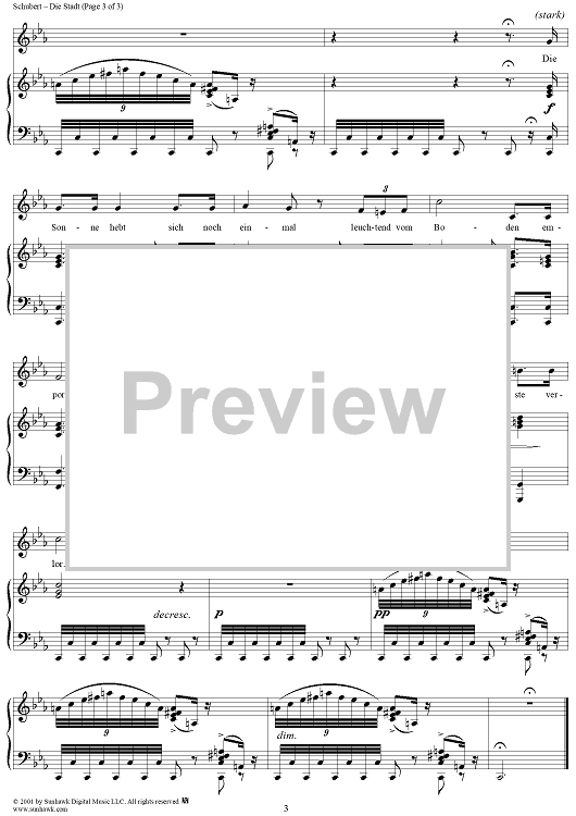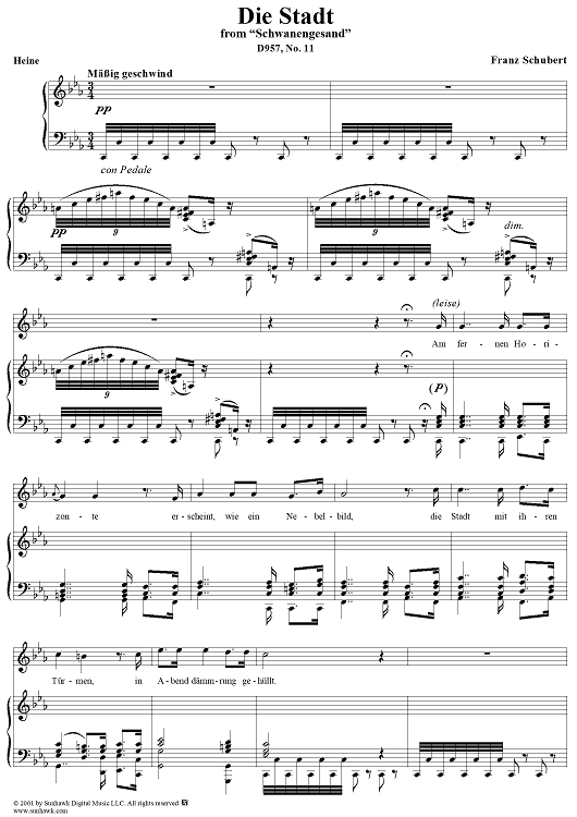Digital Sheet Music for Schwanengesang, D957, No. 11: Die Stadt (The Town) by Franz Schubert, Heinrich Heine scored for Voice/Piano; id:256451