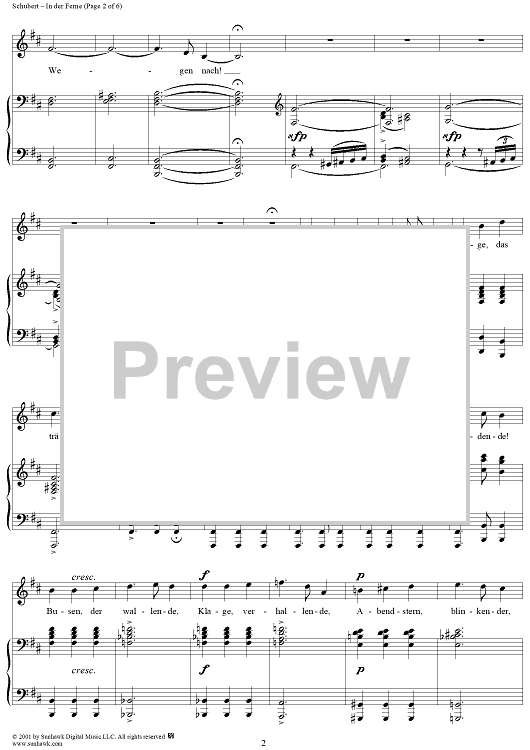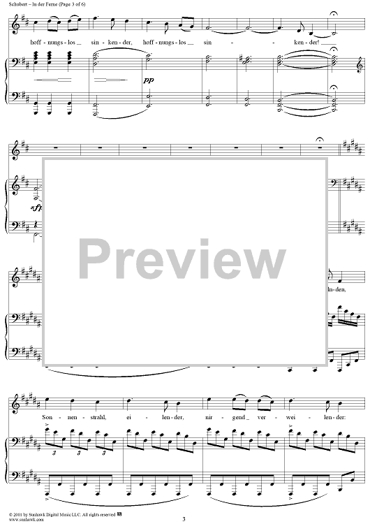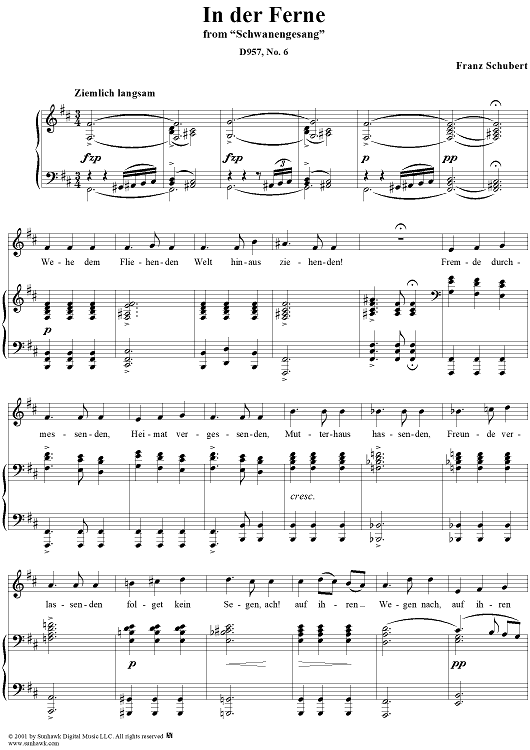 Digital Sheet Music for Schwanengesang, D957, No. 6: In der Ferne (Afar) by Franz Schubert, Ludwig Rellstab scored for Voice/Piano; id:256699