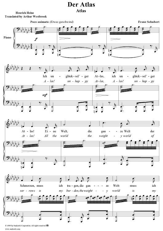 Digital Sheet Music for Schwanengesang, D957, No. 8: Der Atlas (The Atlas) by Franz Schubert scored for Voice/Piano; id:271348