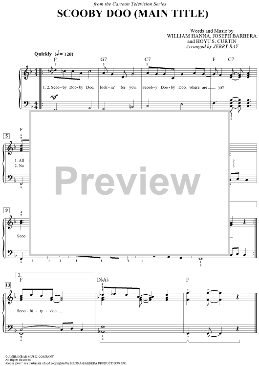 "Scooby Doo (Main Title)" Sheet Music by Joseph Barbera