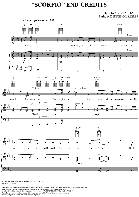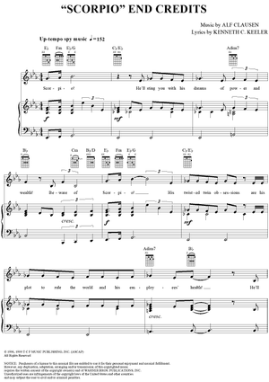 Digital Sheet Music for "Scorpio" End Credits by Alf Clausen, Kenneth C. Keeler scored for Piano/Vocal/Chords; id:293528