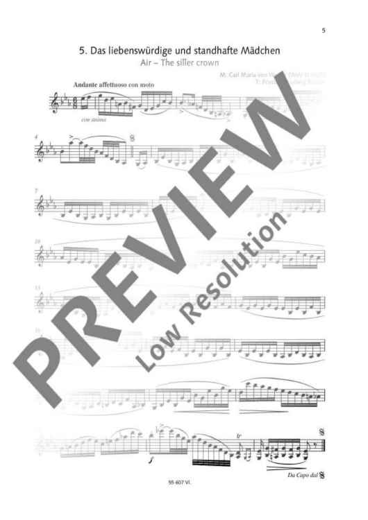 In 1826 Weber wrote musical arrangements of ten traditional Scottish melodies. Some of the texts of the German edition follow the original English texts, others are completely independent texts. The individual parts are available as well.