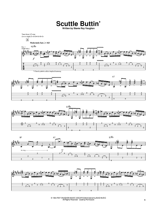"Scuttle Buttin'" Sheet Music by Stevie Ray Vaughan