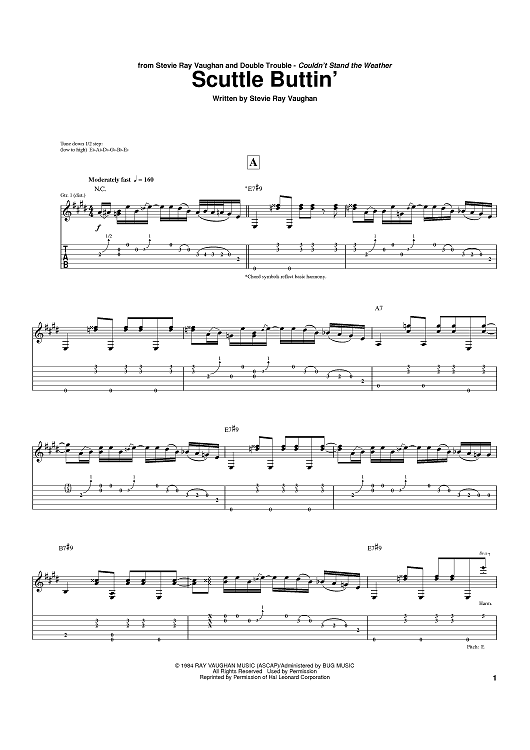 "Scuttle Buttin'" Sheet Music by Stevie Ray Vaughan