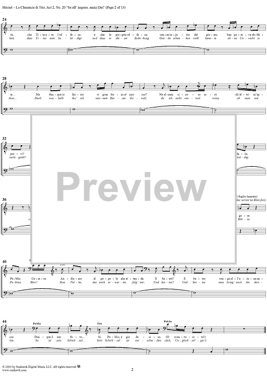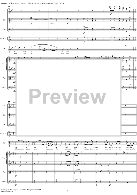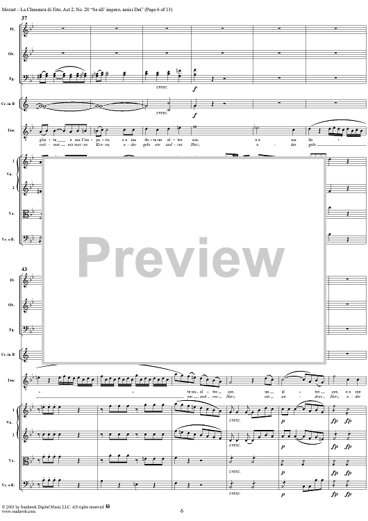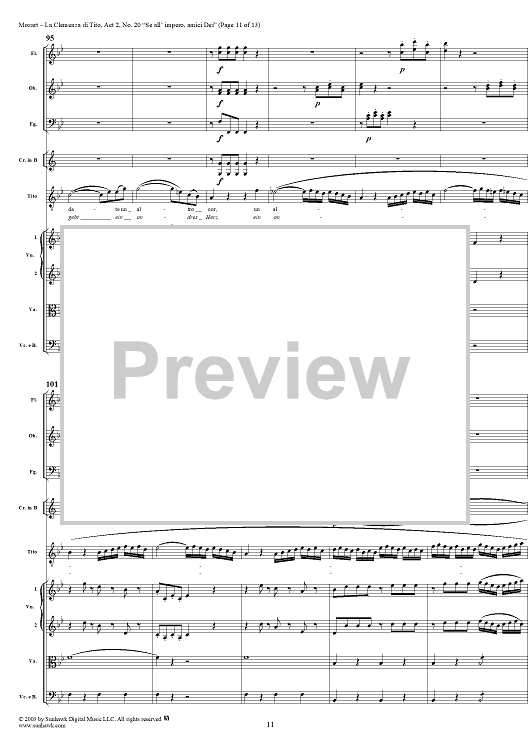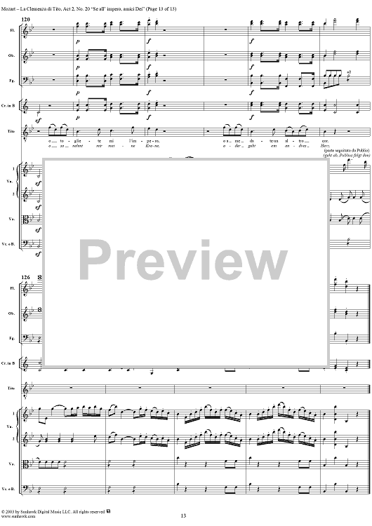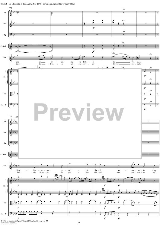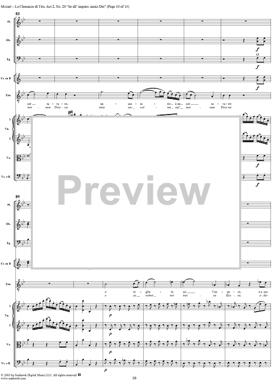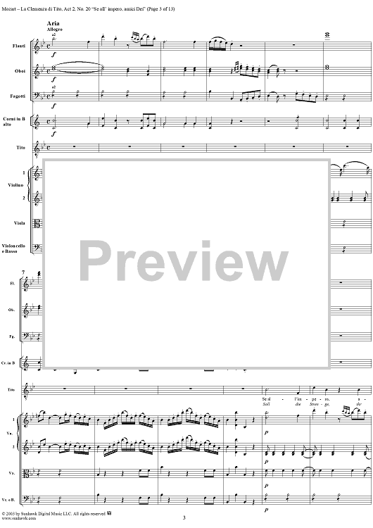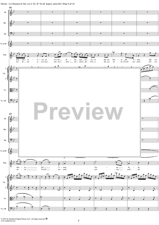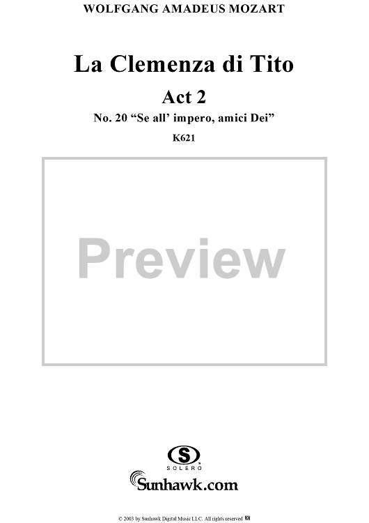 Digital Sheet Music for "Se all' impero, amici Dei!", No. 20 from "La Clemenza di Tito", Act 2 (K621) - Full Score by Wolfgang Amadeus Mozart scored for Voice and Orchestra; id:291616