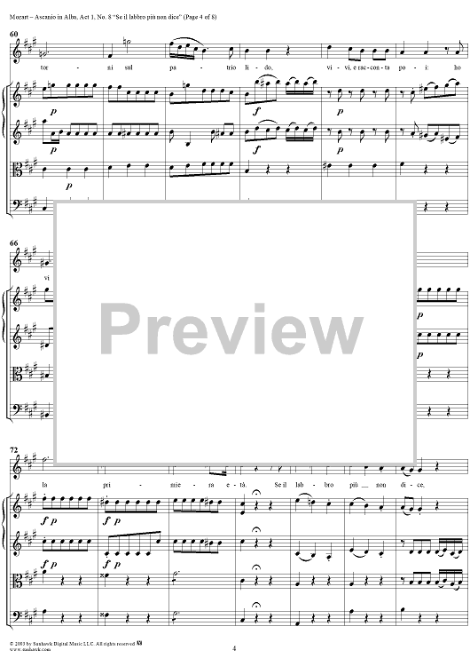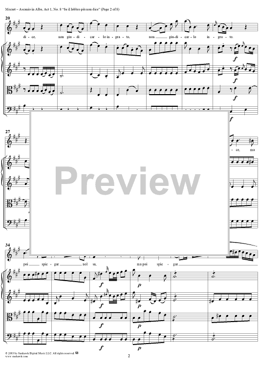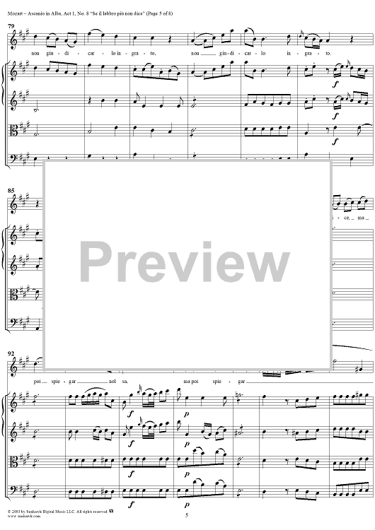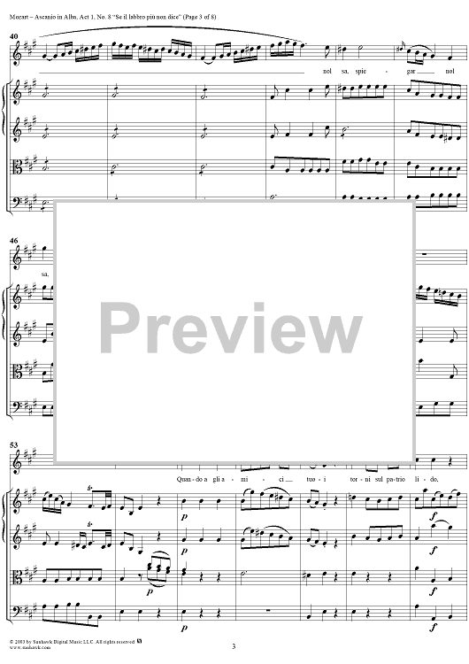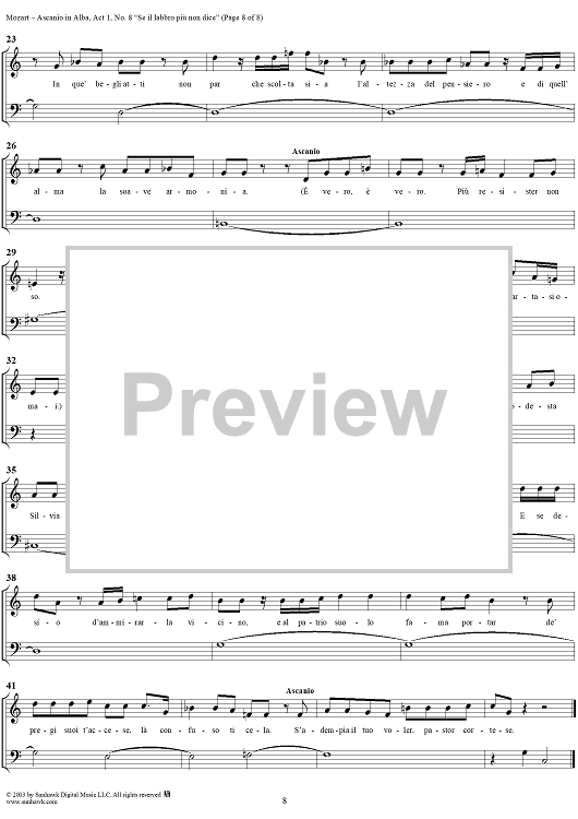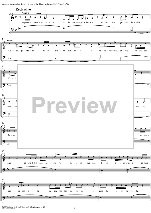 Digital Sheet Music for "Se il labbro più non dice", No. 8 from "Ascanio in Alba", Act 1, K111 - Full Score by Wolfgang Amadeus Mozart scored for Voice and Orchestra; id:292017