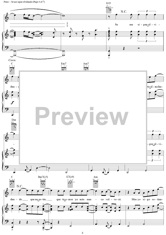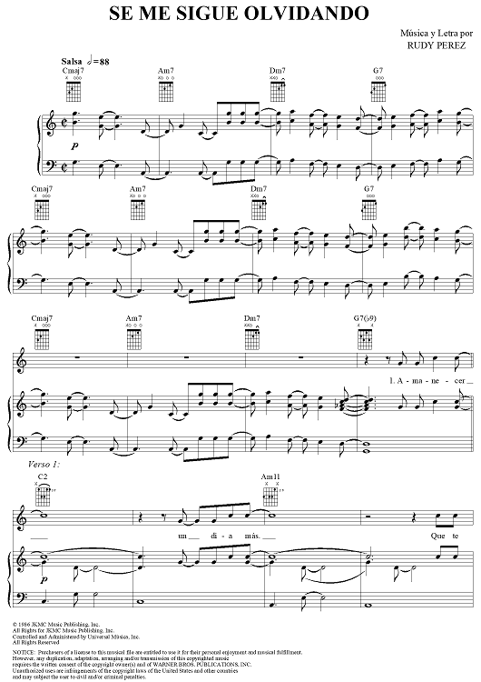 Digital Sheet Music for Se Me Sigue Olvidando by Marc Anthony, Rudy Perez scored for Piano/Vocal/Chords; id:285184