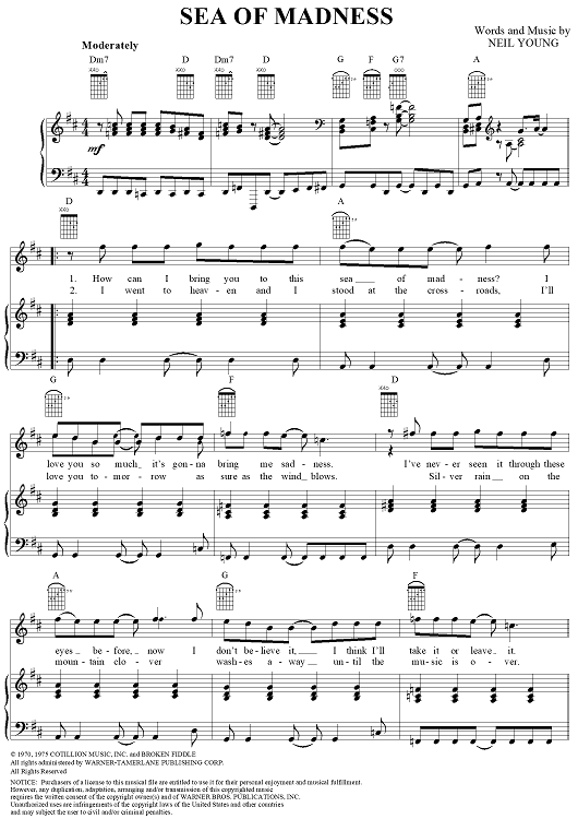 Digital Sheet Music for Sea of Madness by Neil Young scored for Piano/Vocal/Chords; id:262745
